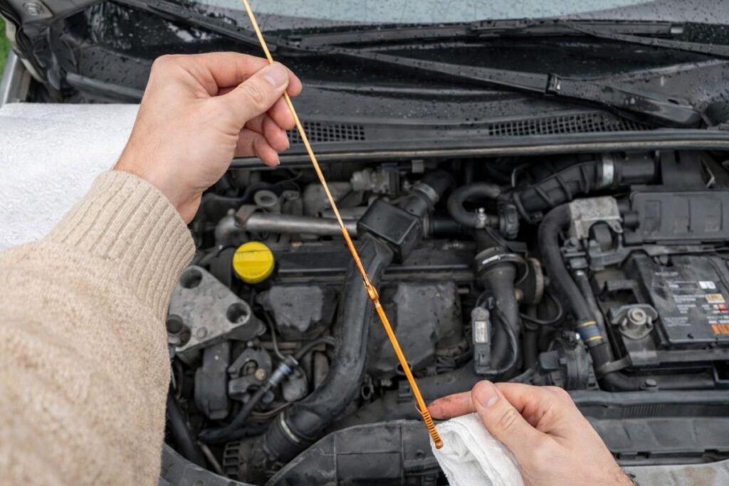 Extrayez la jauge manuelle située sous le capot moteur. Essuyez-la méticuleusement avec un chiffon avant de mesurer. Le niveau d’huile doit impérativement se trouver entre les deux repères gravés.
